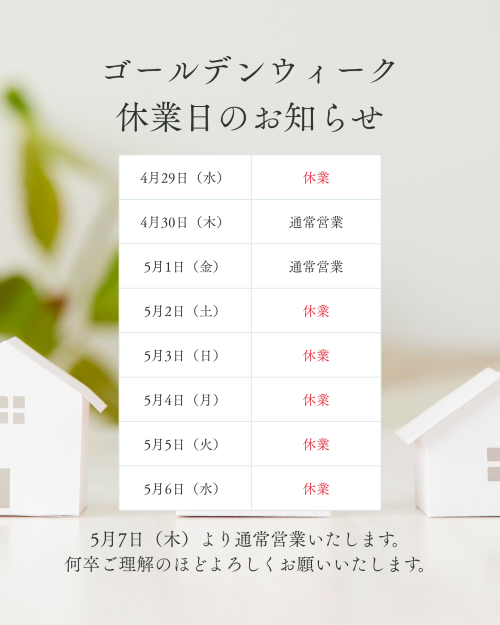 〈ゴールデンウイーク休業のお知らせ〉